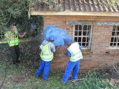 Graffiti and paint being removed from face brick by G.R.S