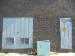 Graffiti Tags and paint removed from galvanized doors and face brick by G.R.S