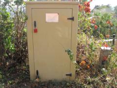 Graffiti Tags removed from cream plastic power box by G.R.S