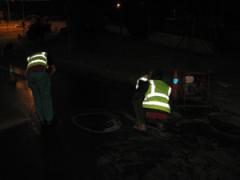 Graffiti Tags being removed from tar road surface by G.R.S |