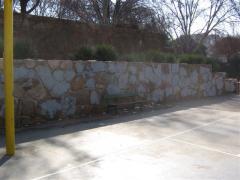 Graffiti and grey covering coat removed from stone wall by G.R.S