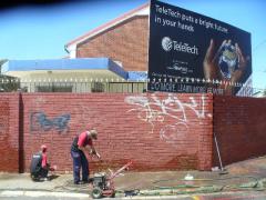 Graffiti Tags and red paint removed from face brick wall by G.R.S