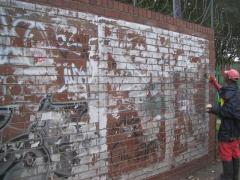 Old Graffiti Tags and paint removed from face brick wall by G.R.S